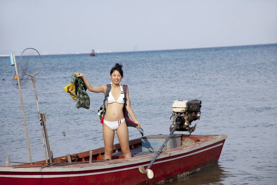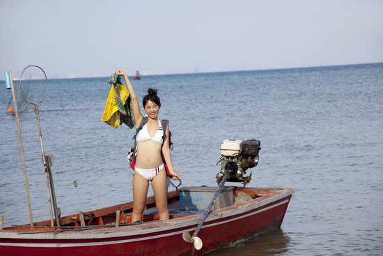 Funny trip in some where that I donn't known where?? Rina Koike pose in cute style on that old boat.