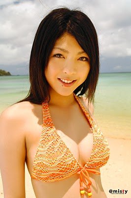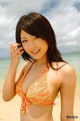 Sakura Sato in orange bikini on the beach